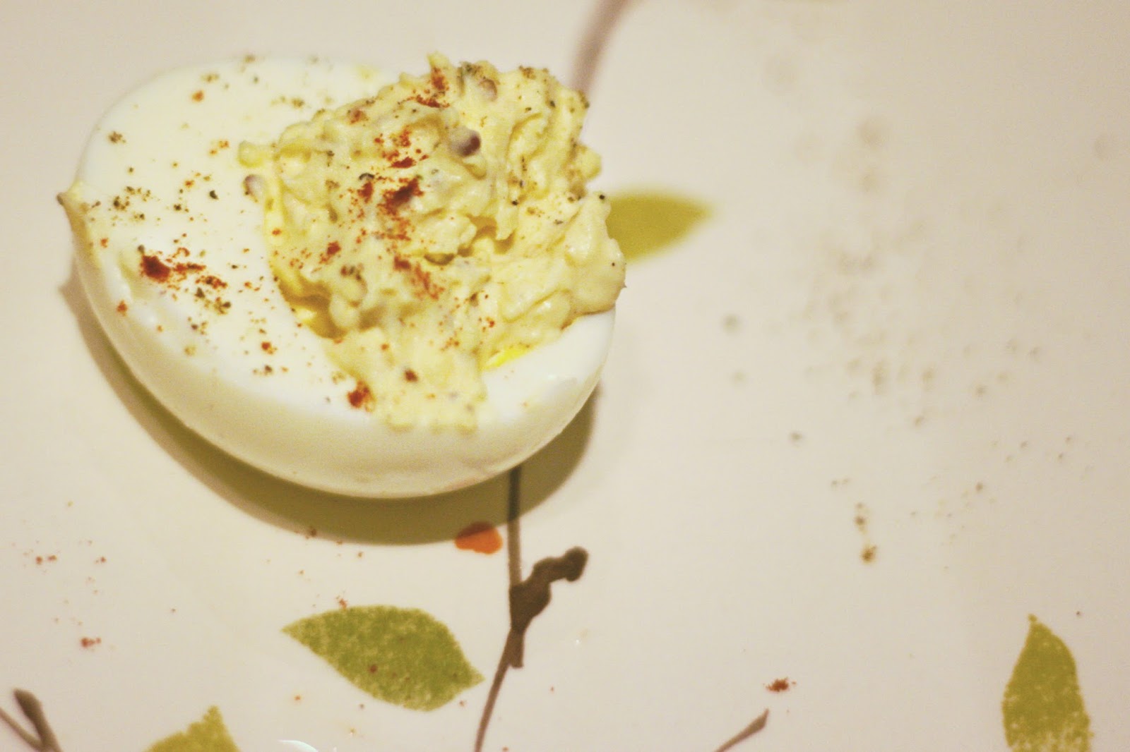 The only devilish thing about this devilled egg is the wicked pissah wife who made them (oh yes, more than one, though the depicted HAS been devoured) for me.